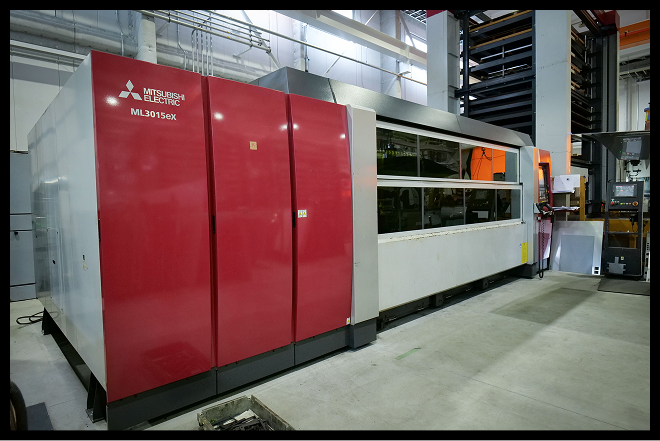 ファイバレーザ・CO₂レーザの2台には自動多段パレットを搭載し、24時間稼働を実現。
